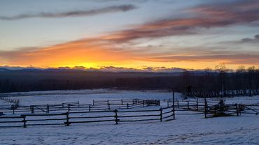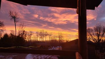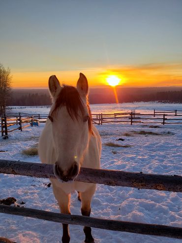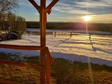 Sunset views from the cabin (at 4.15/4.30 p.m.). Campfire site . No wifi, but cell phones work. Pet our gentle horses anytime and visit our bunnies.
