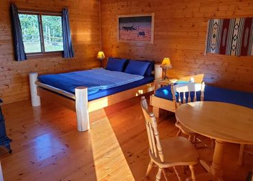 Experience the beauty of nature and unwind in one of our cozy cabins, for 1 - 2 adults in a heated 1 room, 1 bathroom cabin . (There are 2 beds for friends travelling together, but only 1 room!)